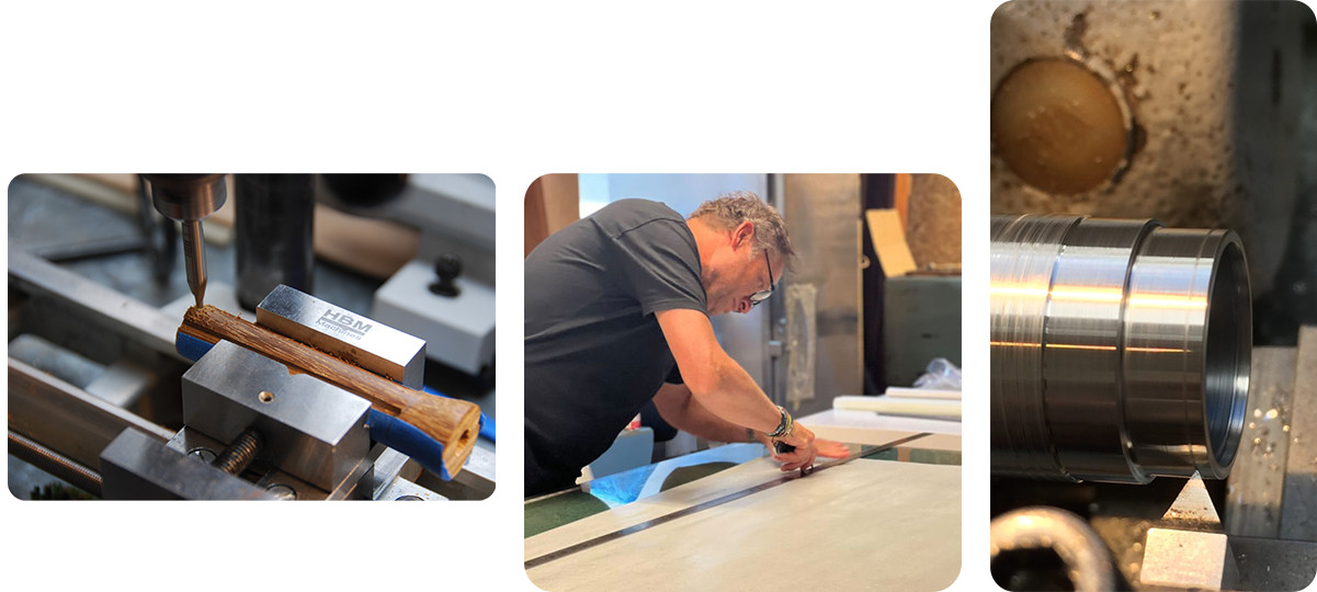 Most of the hardware is design and turned by myself, for screw lock I use hardware from Lemke Concepts or Bellinger Genuine.